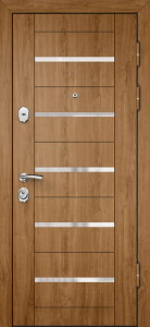 Конструктив учитывает вес и нагрузки: усиленные петли (иногда скрытые), рёбра жёсткости, комбинированные замки (сувальдный + цилиндровый) и продуманный порог. Всё это делает наружную стальную дверь более «выносливой», чем типовую квартирную.